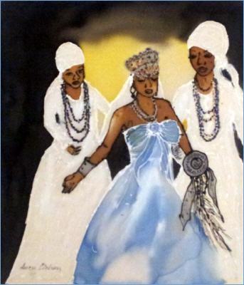 Oxum, die Göttin des fließenden Wassers, der Liebe, der Schön-heit. Du spürst ihre Zärtlichkeit jedes Mal, wenn du klares Wasser trinkst. Sie hat auch die Zerstörungskraft eines Wasserfalls oder die Hinterlistigkeit einer Stromschnelle.